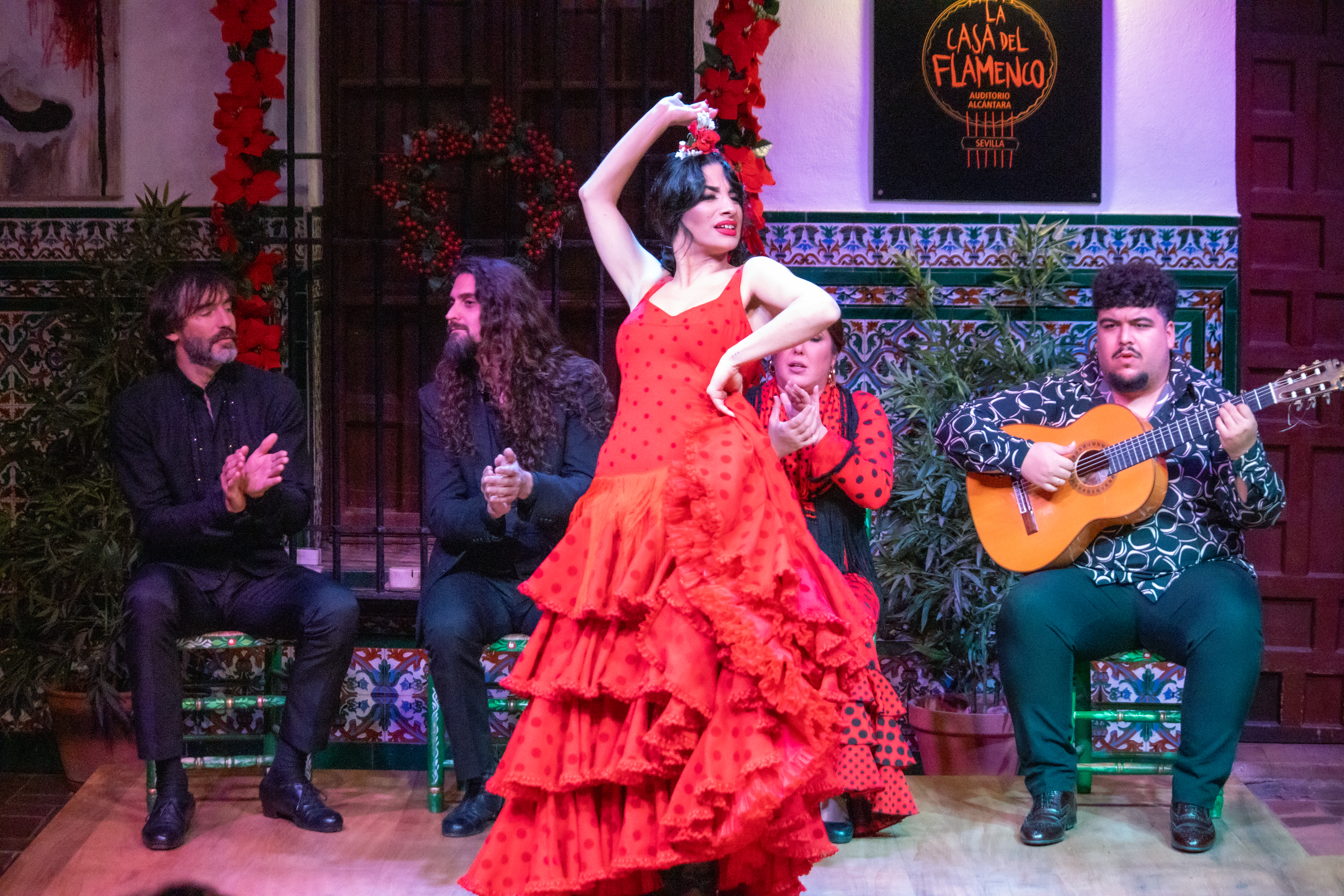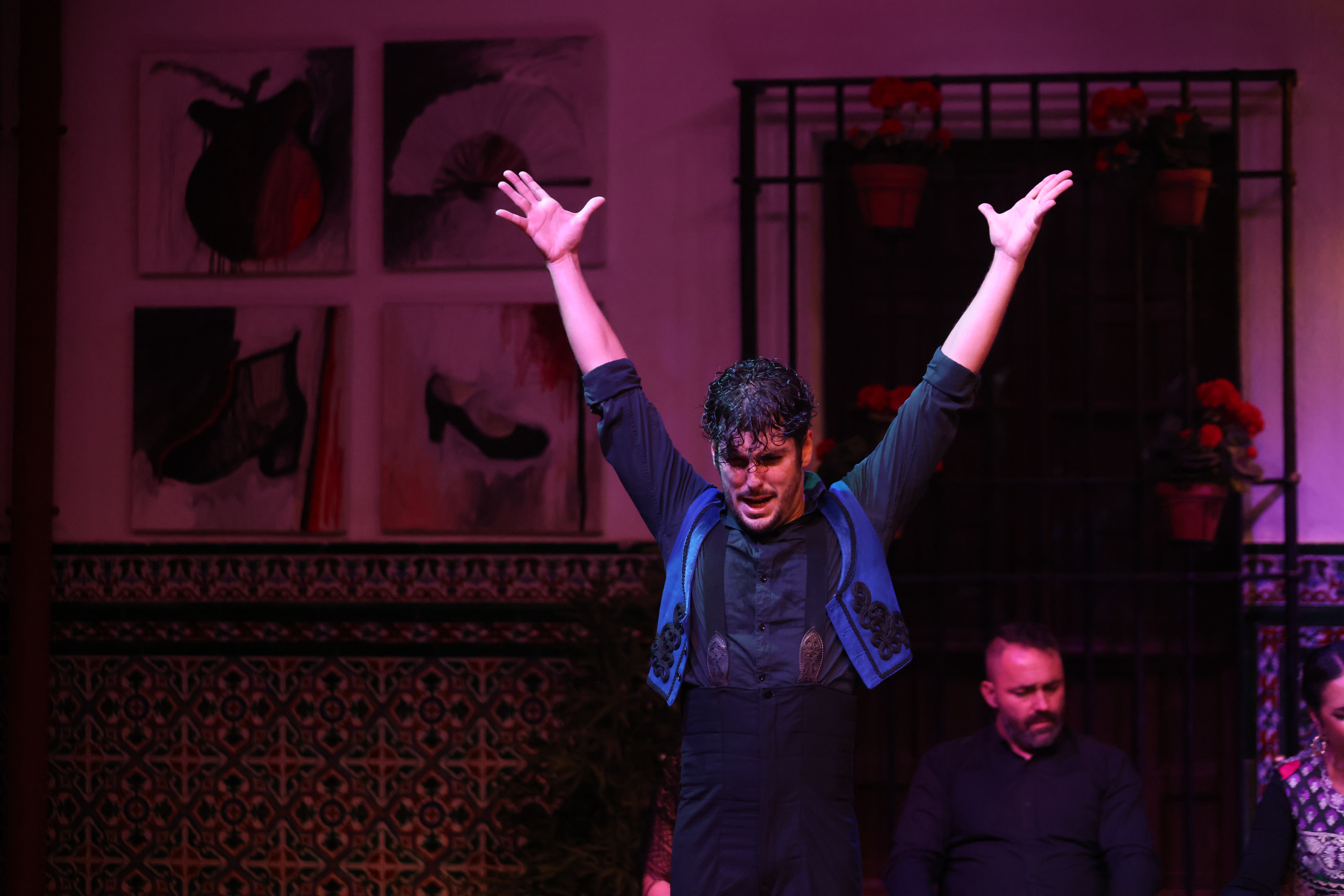 Nuestros artistas (bailaora, bailaor, guitarrista y dos cantaores) de reconocido prestigio, interpretan cada tarde durante una hora, palos diferentes sin ensayar previamente, lo cual confiere al espectáculo la frescura propia del flamenco más tradicional y autentico.